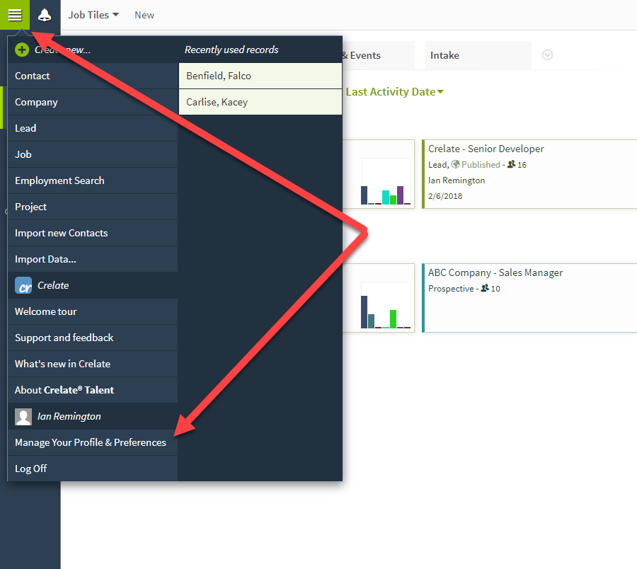 To start, select your navigation menu and select "Your Profile & Preferences"